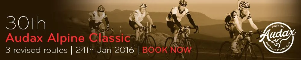 The Audax Alpine Classic is back on 24 January 2016. With nine distances starting at 60km all the way through to the massive '320km Ultimate' there's a ride for all abilities.